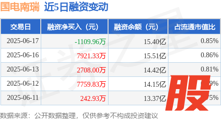 本站消息,6月17日,国电南瑞(600406)融资买入922.2万元,融资偿还2032.15万元瑶鸿配资,融资净卖出1109.96万元,融资余额15.4亿元,近20个交易日中有16个交易日出现融资净买入。