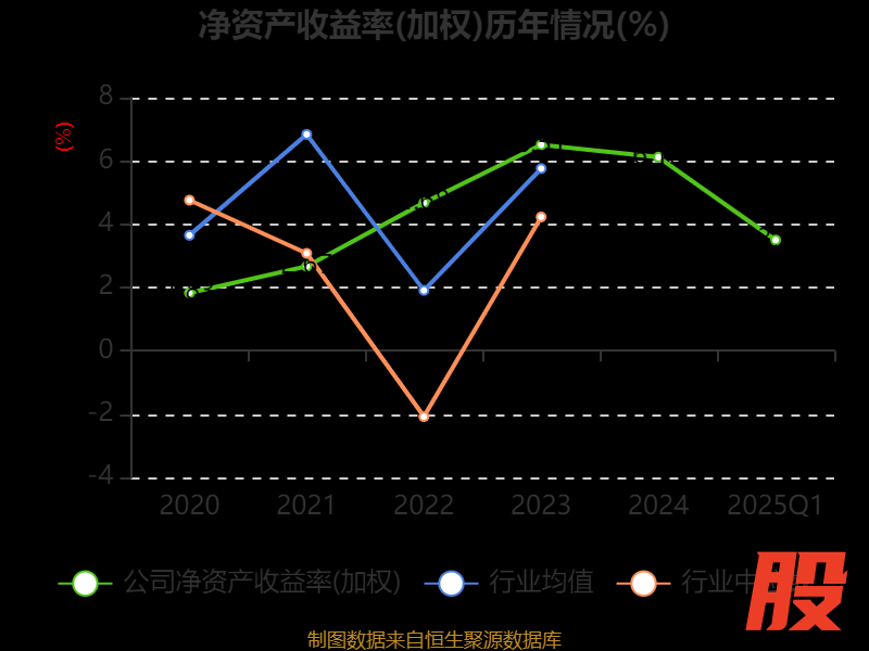 盈利能力方面, 2025年一季度公司加权平均净资产收益率为3.5%,同比下降0.22个百分点。公司2025年第一季度投入资本回报率为1.96%,较上年同期下降0.02个百分点。