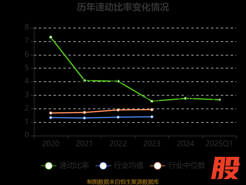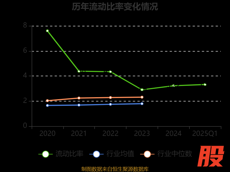 2025年第一季度,公司流动比率为3.32,速动比率为2.67。